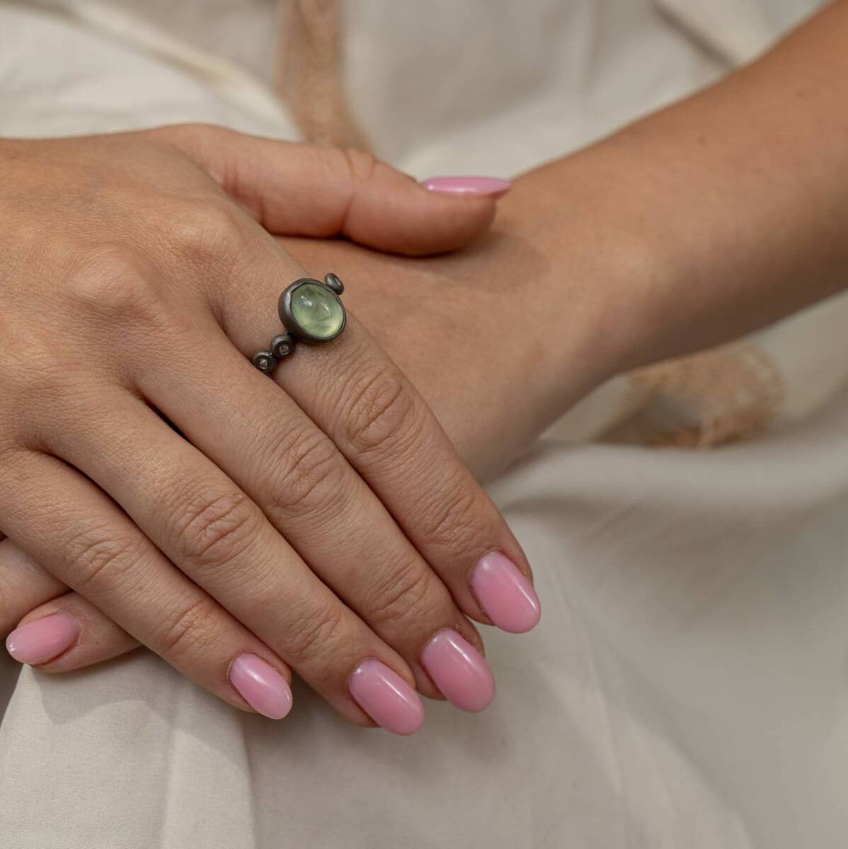Μοντέρνο δαχτυλίδι, από ασήμι 925' με πράσινο φθορίτη σε οβάλ σχήμα. Επιροδιωμένο για μία ανθρακί απόχρωση. Ένα πολύ μοντέρνο σχέδιο και εντυπωσιακό για το χέρι σας το οποίο θα το λατρέψετε. Εάν σας αρέσει το συγκεκριμένο στυλ, επικοινωνήστε μαζί μας για να διαλέξετε από τη μεγάλη συλλογή μας με πέτρες για να το προσαρμόσετε ακριβώς στο γούστο σας.