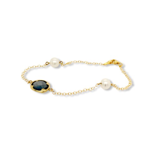Βραχιόλι από κίτρινο χρυσό 14 καρατίων, London Blue Topaz και δύο μαργαριτάρια. Ένα βραχιόλι που ξεχωρίζει με την πρώτη ματιά, με την συναρπαστική απόχρωση του London Blue Topaz. Ένα βραχιόλι που μπορείτε να το προσαρμόσετε ακριβώς στο γούστο σας, επιλέγοντας τους λίθους, τα σχήματα και τα μεγέθη που εσείς θέλετε, γι' αυτό μη διστάσετε να επικοινωνήσετε μαζί μας.
