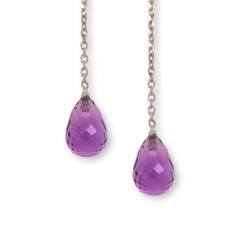 Λευκόχρυσα σκουλαρίκια 14 καρατίων με ορυκτό μωβ Αμέθυστο. Ένα σχέδιο ιδιαίτερα μοντέρνο και διακριτικό, με 2 Αμέθυστους σε σχήμα σταγόνας. Το συγκεκριμένο είδος σκουλαρικιών φοριέται ιδιαίτερα εύκολα. Το καλύτερο στοιχείο τους είναι ότι έχουν έντονη κινητικότητα πάνω στο αυτί, χωρίς όμως να ενοχλούν.
