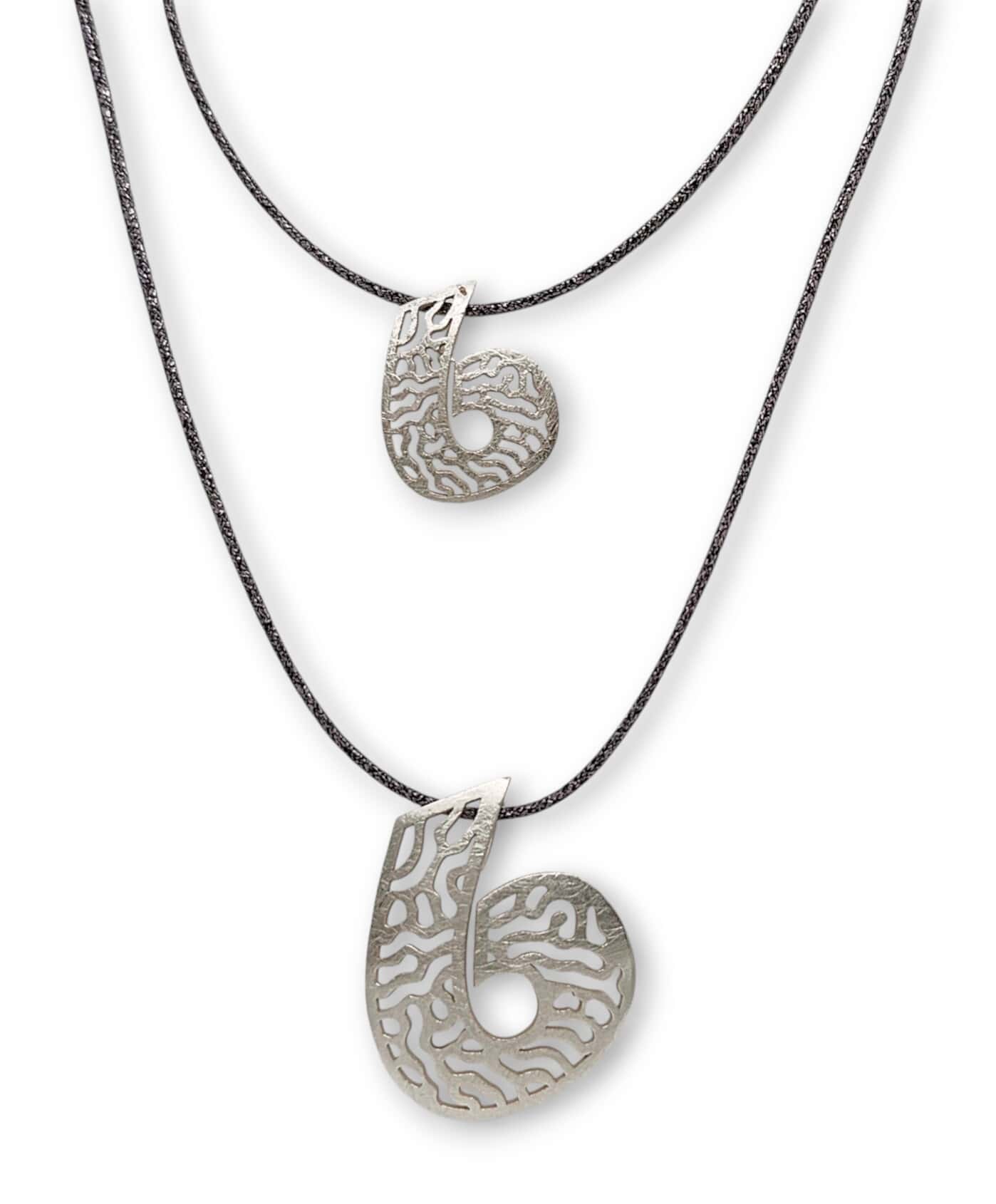Ένα ιδιαίτερο γούρι για το 2026 σε δύο μεγέθη, κατασκευασμένο από ασήμι 925°, με σύγχρονη γραμμή και οργανική αισθητική. Ο σχεδιασμός του αριθμού «6» αποδίδεται μέσα από ένα περίτεχνο μοτίβο που θυμίζει φυσικούς σχηματισμούς, προσφέροντας αίσθηση ροής και ισορροπίας.